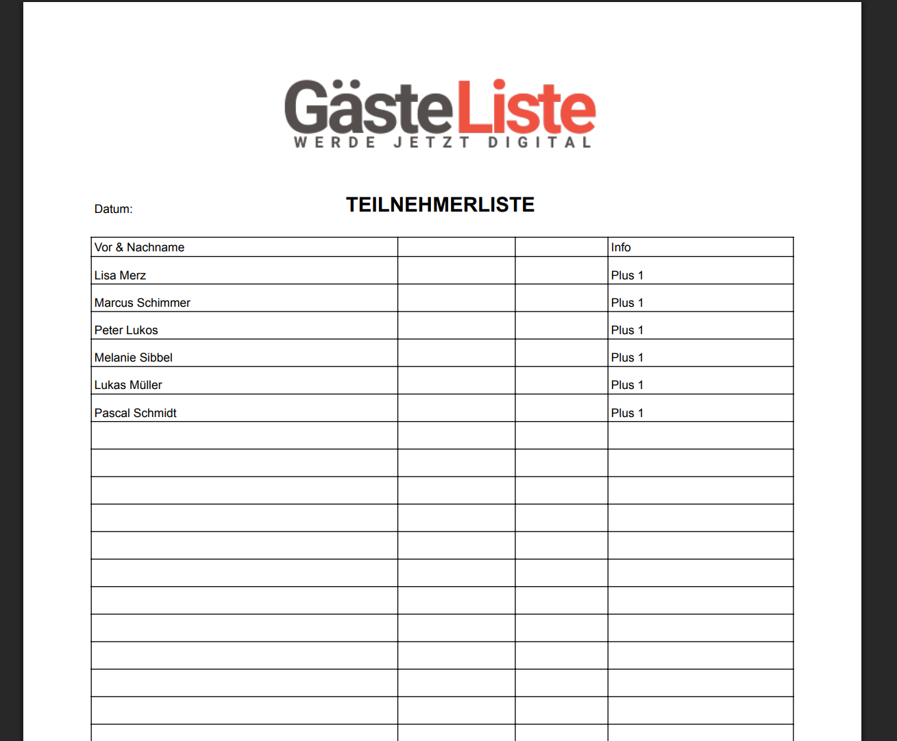Unsere digitale Gästeliste bietet dir maximale Flexibilität und einfache Verwaltung. Bearbeite Einträge jederzeit über Telegram oder die Web-Oberfläche – egal, wo du gerade bist. Dank der Gruppenbearbeitung können mehrere Leute gleichzeitig die Gästeliste verwalten und du sparst wertvolle Zeit. Zudem lässt sich die gesamte Liste mit nur einem Klick als übersichtliches PDF exportieren.