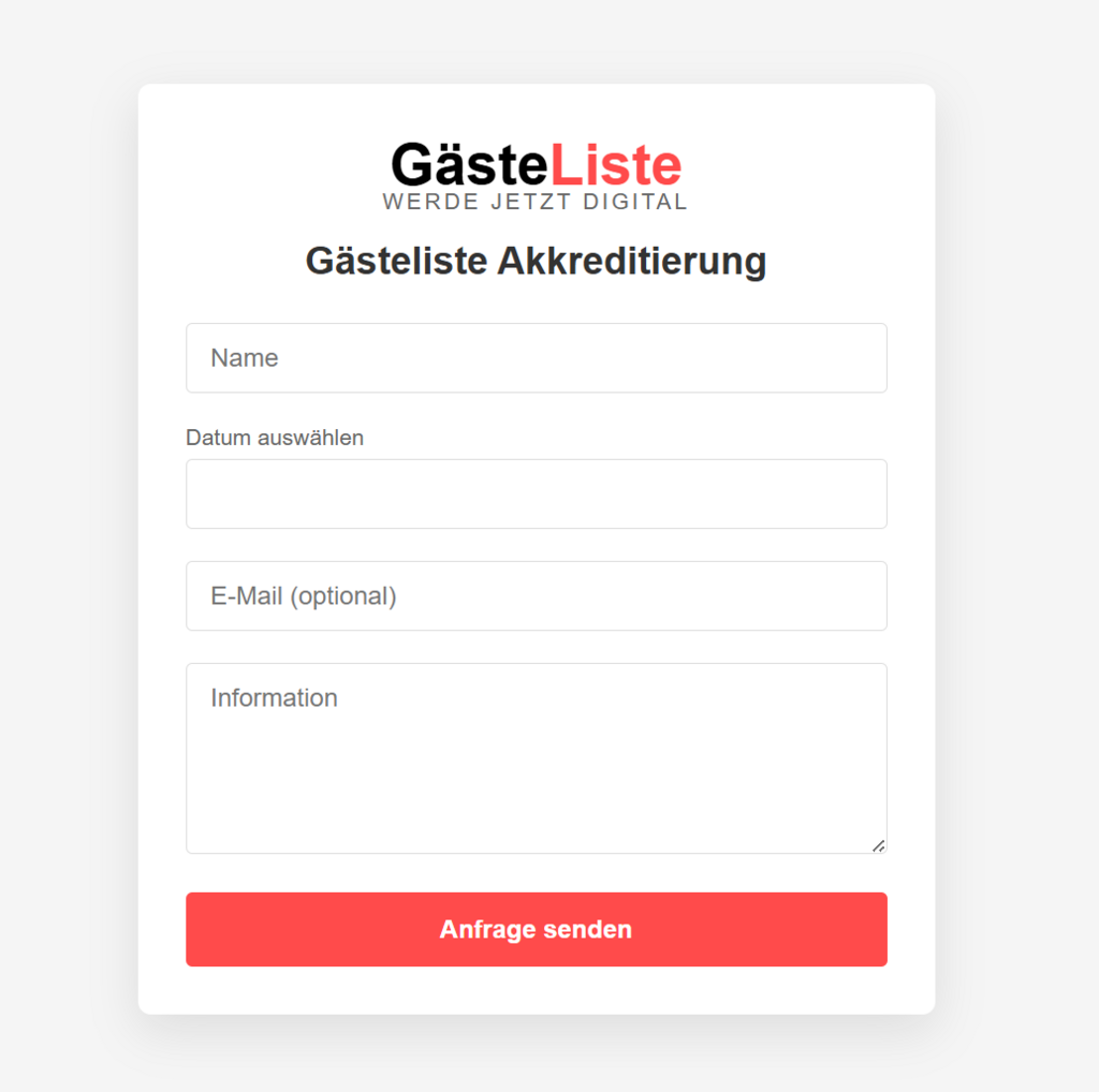 Mit unserem anpassbaren Formular erfasst du Gästedaten genau nach deinen Anforderungen. Passe die Felder flexibel an und entscheide, welche Informationen du benötigst. Gäste füllen das Formular eigenständig aus, während du nur noch bestätigst oder ablehnst – schnell, einfach und effizient.